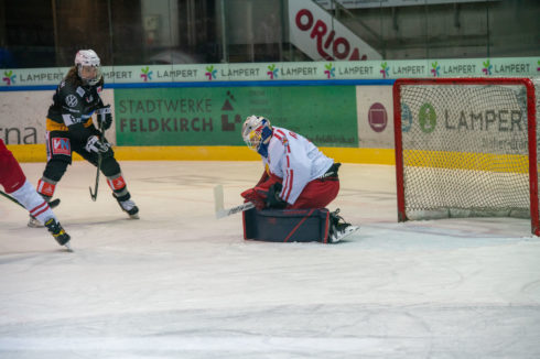 Die Feldkircher zeigten von Beginn an eine sehr starke Defensivleistung und störten mit hartnäckigem Forechecking den Spielaufbau des Titelverteidigers. Dennoch konnten im ausgeglichenen Startdrittel die Hausherren eine knappe Führung mit in die Kabine nehmen.